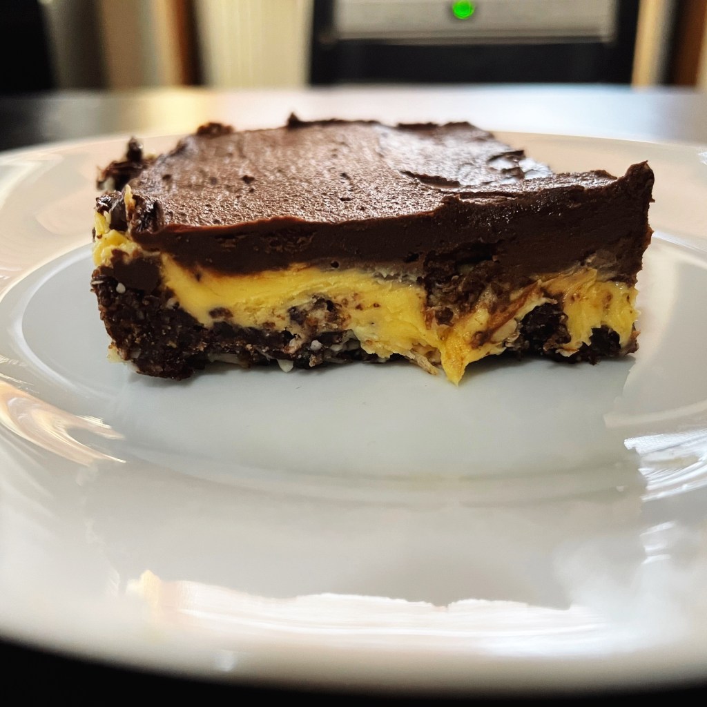 I made Nanaimo Bars, a no-bake layered dessert from British Columbia. They turned out so well. The bottom layer was rich and chocolatey and the buttercream was perfectly smooth and sweet. The buttercream also had the perfect yellow color from the custard powder. I would 100% make these again.