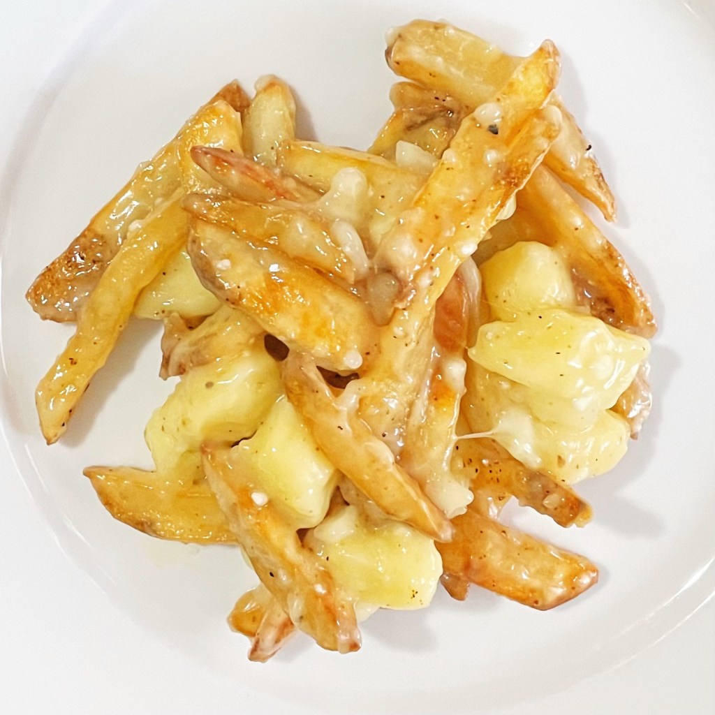 Poutine is another classic French Canadian Dish. It is French Fries topped with cheese curds and gravy. I was a little worried about finding cheese curds in NYC, but I found them at Target. This recipe turned out so well. The cheese curds were slightly tangy and not too squeaky (which sometimes they can be). The recipe created a lot more gravy than we needed, which in our case, means a nice treat for our dog.
