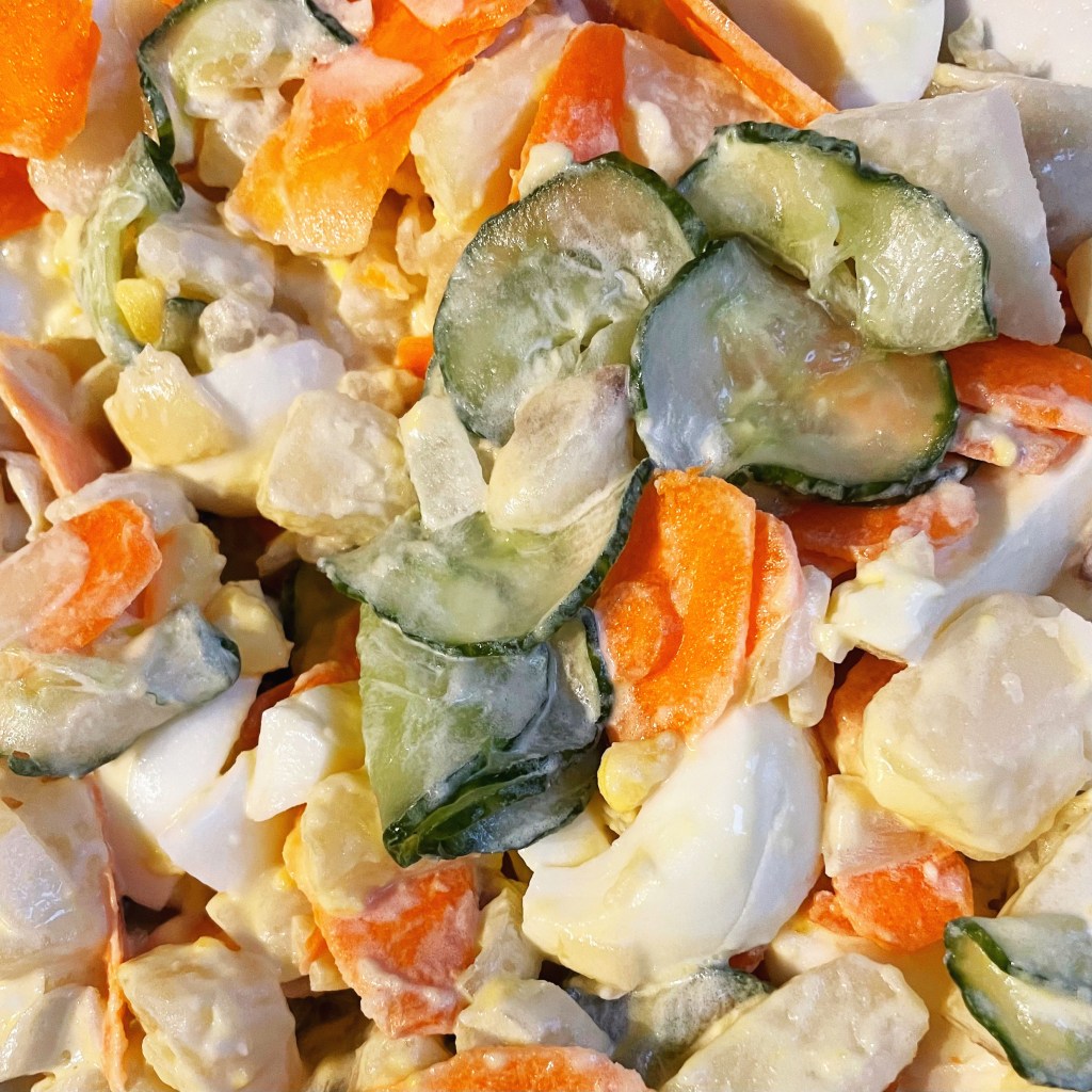 I found an article titled, How to have Korean BBQ at Home with Trader Joe’s Products, and I was certainly intrigued. It was Memorial Day Weekend after all, so a barbeque-style meal seemed appropriate. We made the potato salad recipe from the article, and it turned out very well. It called for more vegetables than other potato salads I’ve had, which I liked. The cucumbers and carrots gave it a nice crunch. We also used a grill pan to make Trader Joe’s Korean-style beef ribs and finished the meal off with a salad using Trader Joe’s carrot miso dressing. The whole meal was delicious, and I highly recommend.