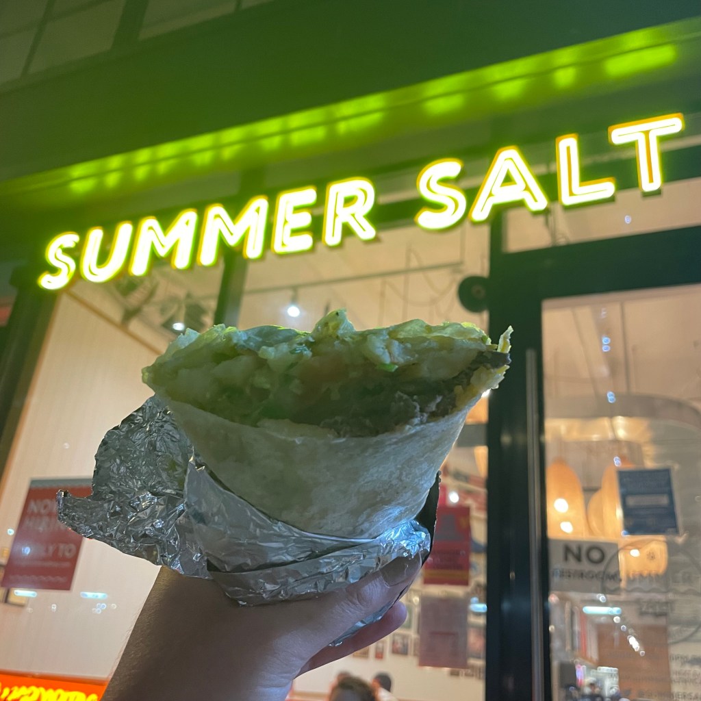 - Thoughts: There is something lovely about this place that is right on the beach in Rockaway. I felt almost transported to Southern California. This burrito took “Super” very seriously and was huge, so my husband and I decided to split one. The meat was saucy and spicy, and that flavor permeated the burrito. My one complaint is that there wasn’t enough cheese.